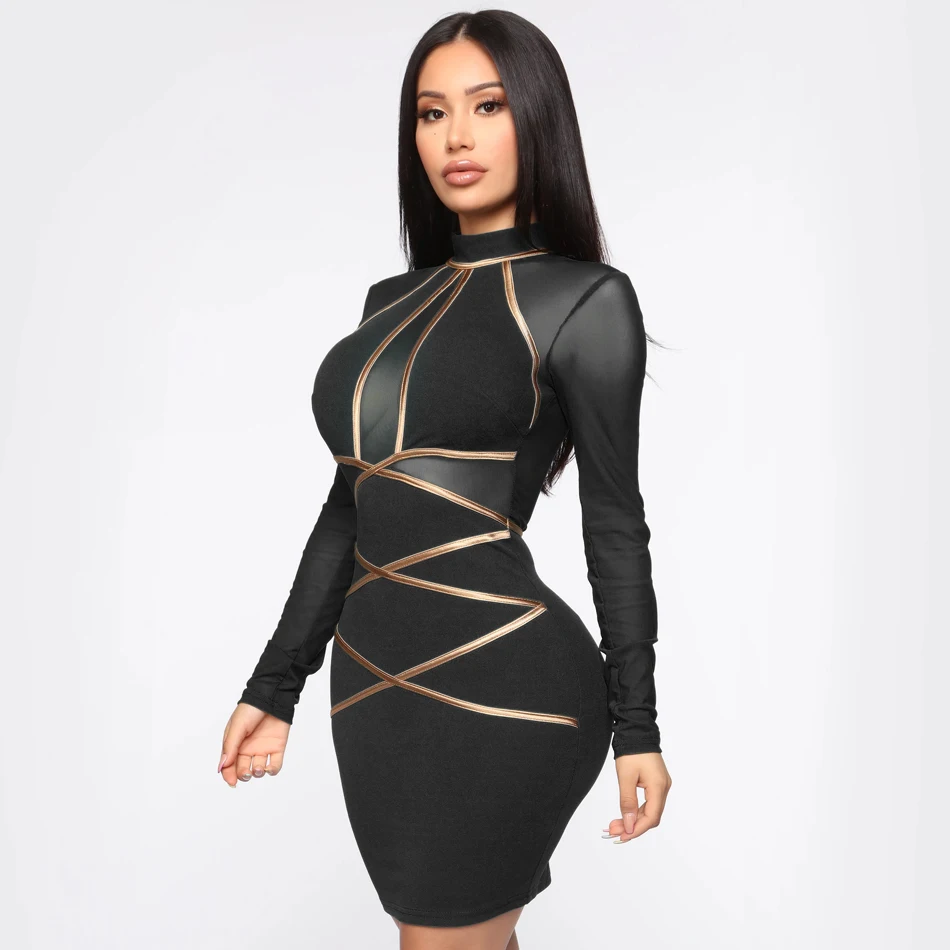 Popular Black Long Sleeve Nova Fashion Casual Dress Sexy Package Hip Bodycon Mini Dresses - Buy Black Mini Dress,Nova Fashion Sexy Dresses,Long Sleeve